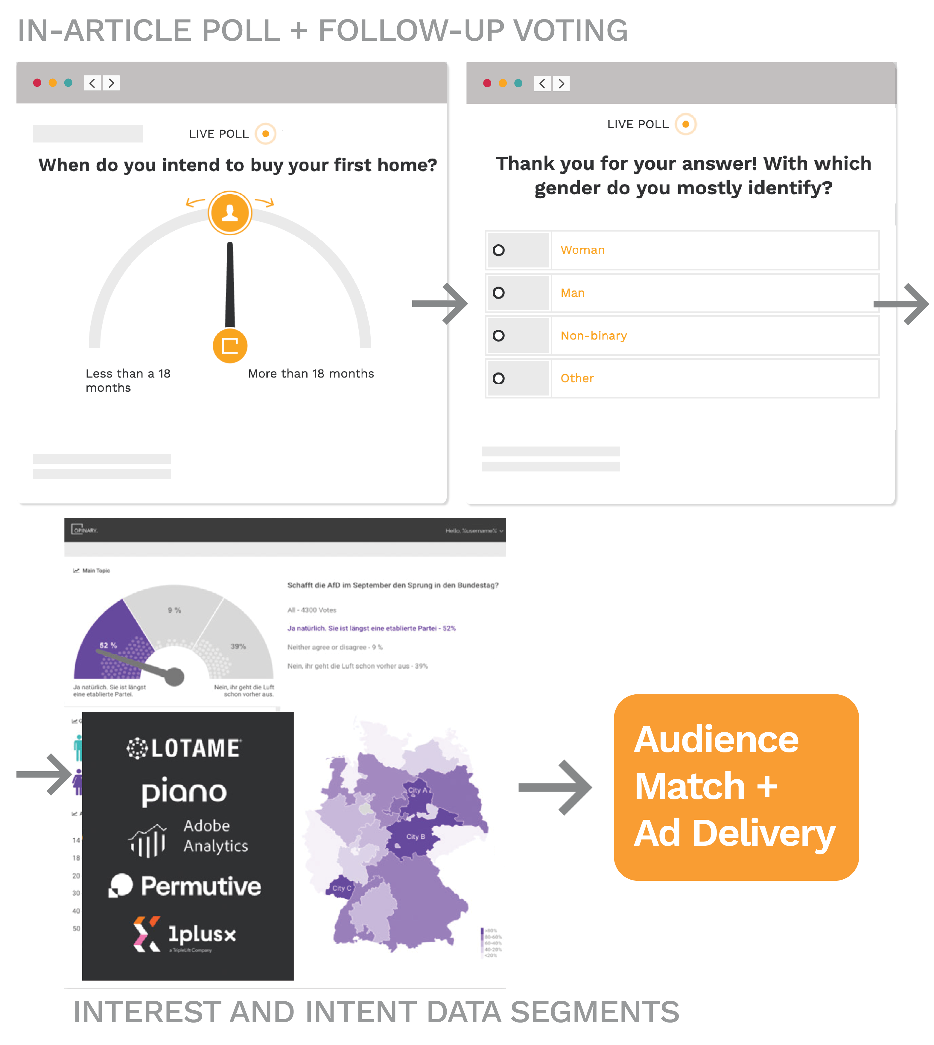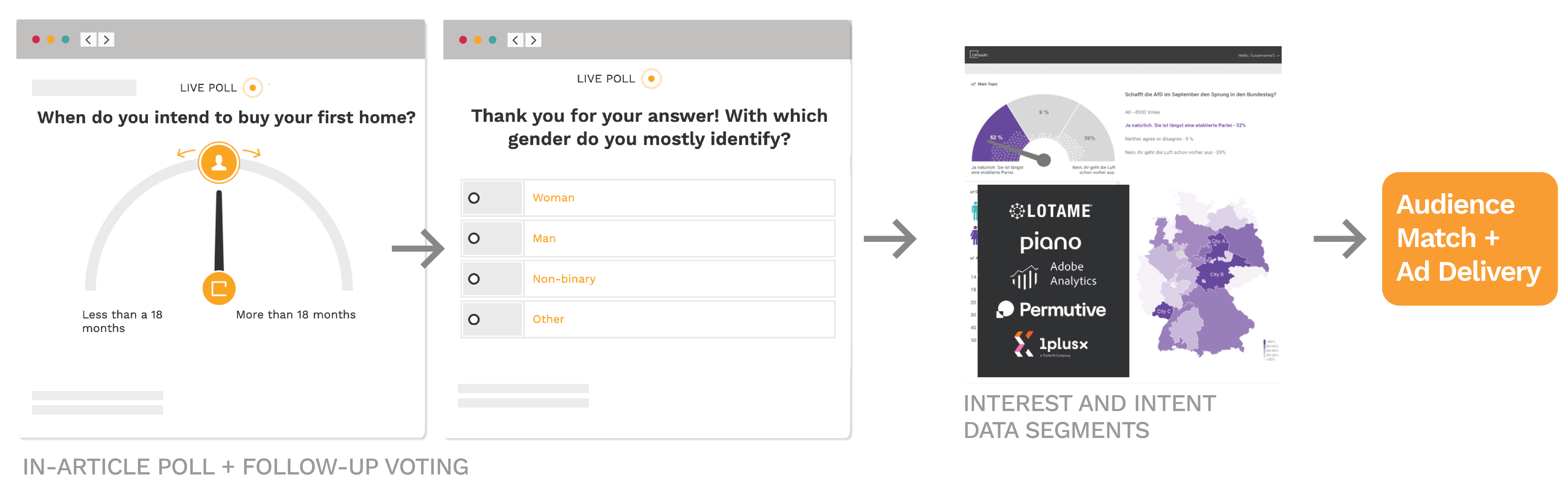 We worked closely with the Opinary team to develop a first in-market, bespoke, data led engagement offering. Essentially, we integrated our audience data segments with the Opinary poll platform.